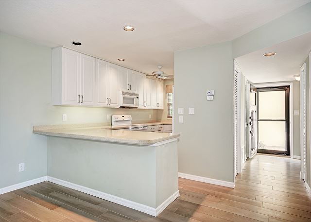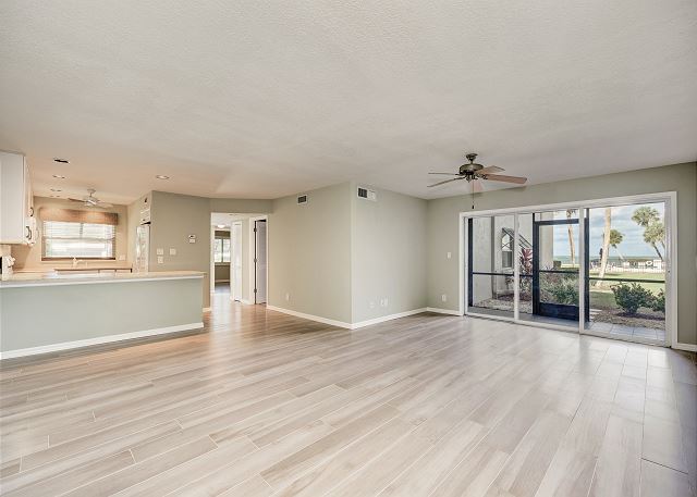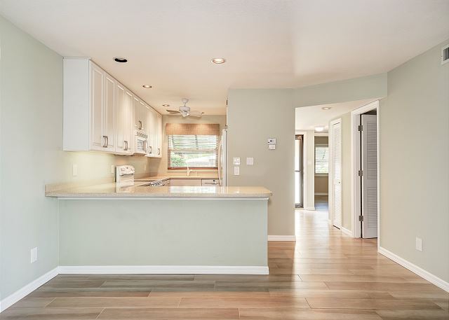 Discover your sunlit retreat in the desirable waterfront community of Sea Village on Siesta Key! This ground-floor, 2-bedroom, 2-bathroom condo offers a bright and spacious living environment. The open kitchen is perfect for those who enjoy cooking, and the living area provides ample space for relaxation and entertaining. Each bedroom is a comfortable haven with custom closets for added convenience. Enjoy the ease of your own in-unit washer and dryer. Plus, your furry friends are welcome here! Please note: Due to recent hurricane damage, the community amenities – including the two pools, grilling area, lush green spaces, and fishing pier – are currently inaccessible and under repair. There will also be intermittent limited parking available due to ongoing construction and repairs to the carports and grounds. The monthly rental price reflects the current lack of access to community amenities. The condo itself remains in good standing and offers a comfortable living space. Enjoy your morning coffee from the covered lanai with potential views of the bright turquoise water and occasional dolphin sightings. The vibrant North Village, with its unique boutiques, fantastic restaurants, and live music, is just a short bike ride or stroll away.
